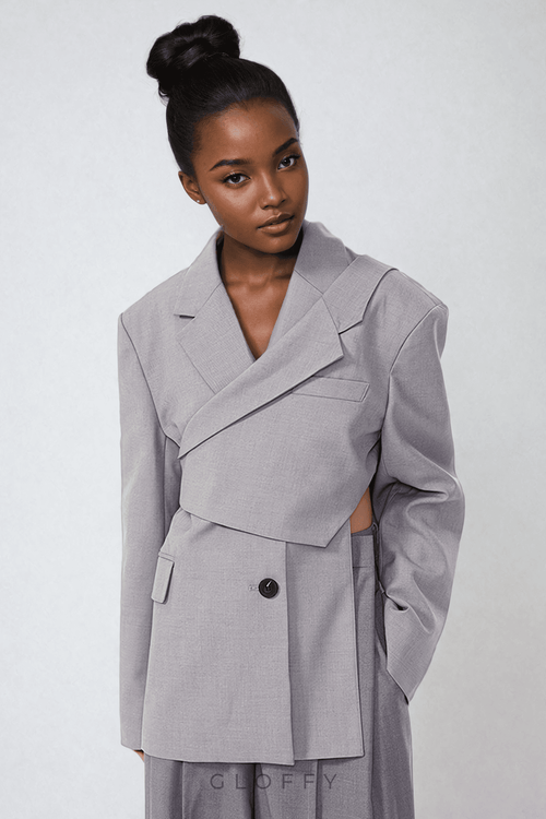 Ace Çıkarılabilir Asimetrik Dekonstrükt Blazer Ceket Gri