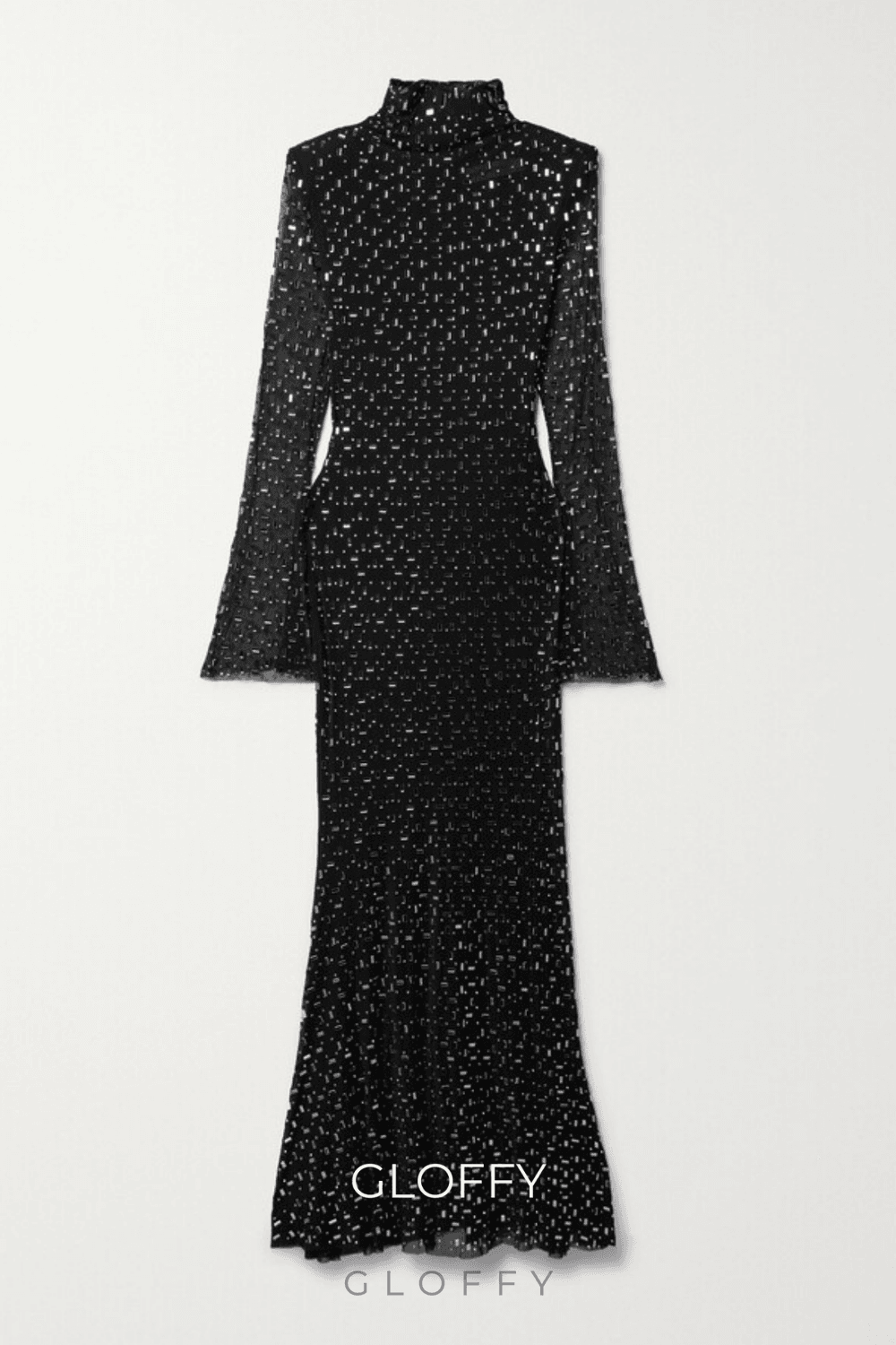 Andie Strasslı Bodycon Uzun Kollu Maxi Elbise