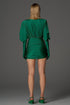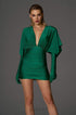 Bu mini elbise, sofistike ve çok yönlü bir görünüm için derin V yakalı, çıkarılabilir eldiven kollu ve dantelli korsajlıdır. İpek jarse örgü ve Tencel karışımından üretilen bu ürün, orta esnekliğe sahip, göz alıcı bir uyum sunar.