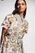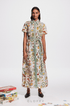 Bu günlük elbise, çan kollu ve şık çiçek desenli olup, konforu zarafetle birleştiriyor. Önden düğmeli gömlek tarzı tasarım, çok yönlülük katarak hafif bir dış katman olarak açık olarak giyilmesine veya şık bir elbise olarak düğmeli olarak giyilmesine olanak tanır. Rahat kesimi her duruma uygun stil oluşturmayı kolaylaştırır.