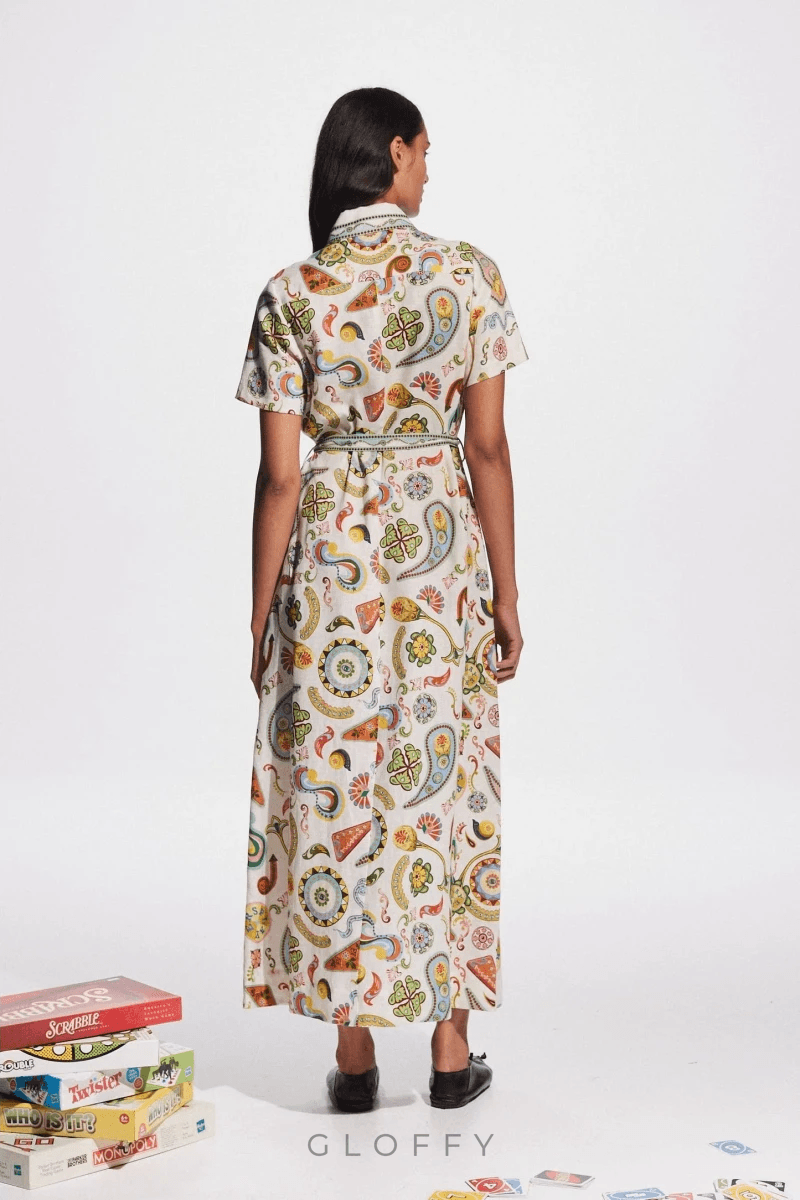 Anouche Kısa Kollu Paisley Uzun Elbise