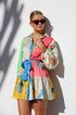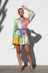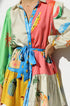 Çok yönlülük ve stil için tasarlanan bu çok renkli desenli elbiseyle gardırobunuzu aydınlatın. Klasik yakalı yakaya ve işlevsel düğmeli ön kısma sahip bu elbise, zarafeti pratiklikle zahmetsizce birleştiriyor. Ekli fırfır etek kısmı eğlenceli bir dokunuş katarken, elastik manşetli uzun kollar elbisenin kadınsı çekiciliğini artırıyor.