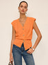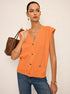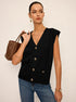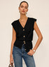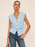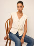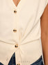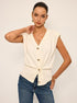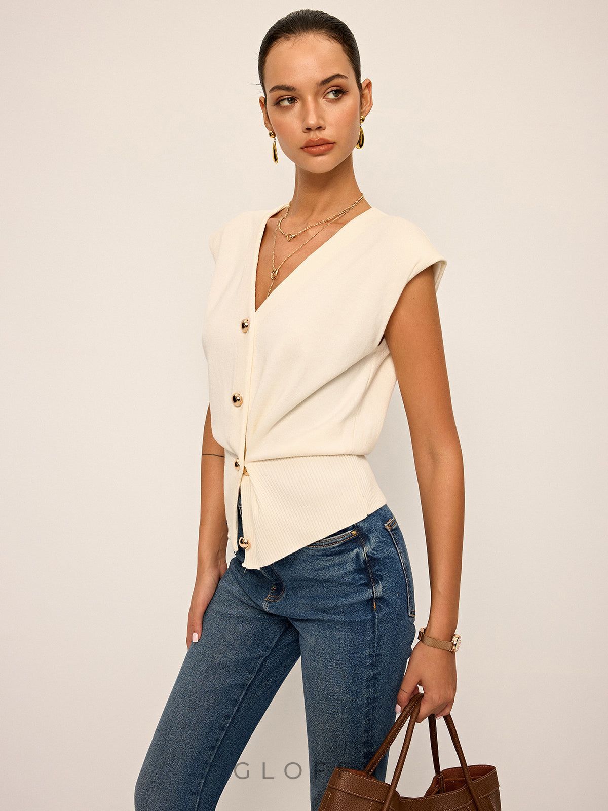 Düğmeli Yarım Kollu Ribanalı Triko Yelek – Ekru