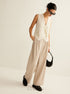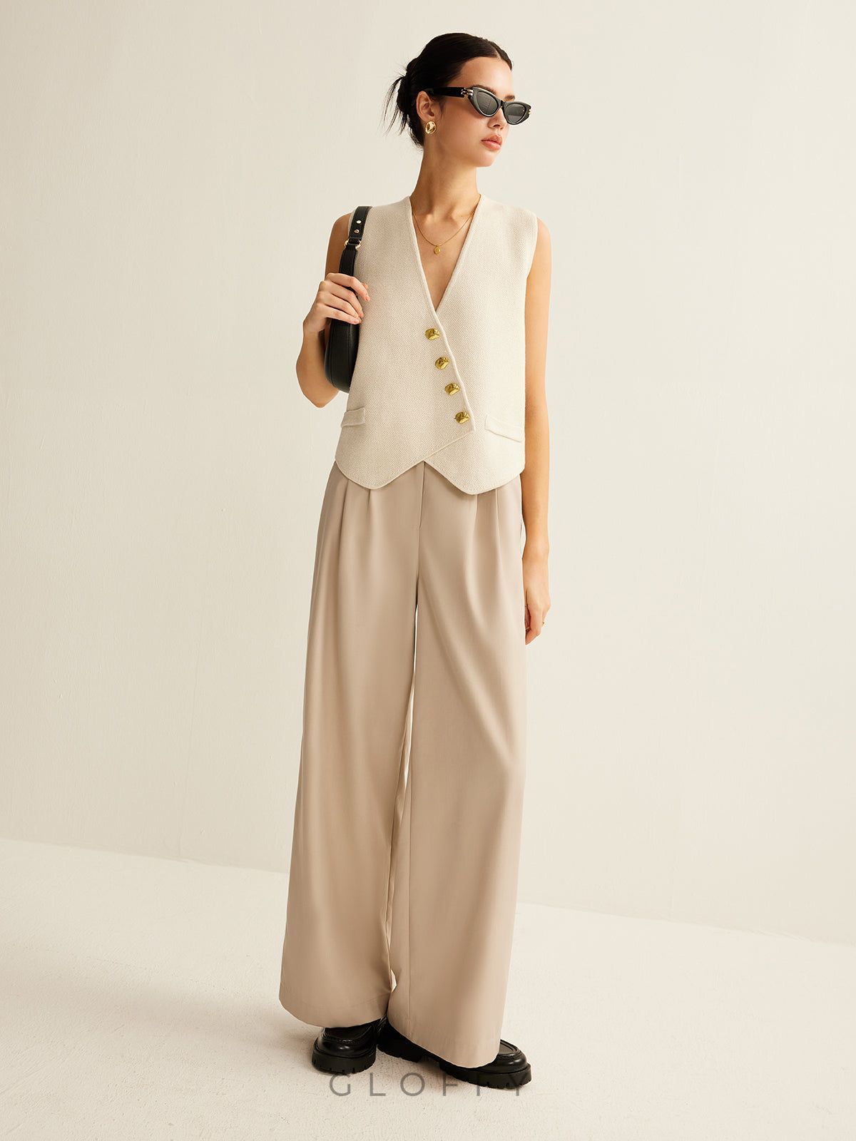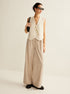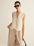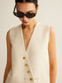 Asimetrik Düğmeli Triko Yelek – Ekru