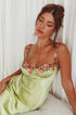 Stil Notu: Işıltılı lime yeşili saten kumaş ve çiçek işlemeli askılarıyla büyüleyici bir zarafete sahip olan Zemira elbise, yaz davetlerinin vazgeçilmez parçalarından biri olmaya aday. Feminen silueti vurgulayan kalıbı ve zarif detaylarıyla sade ama etkileyici bir görünüm sunar.