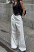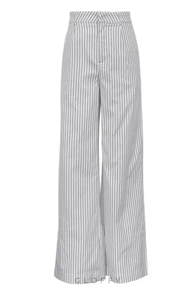Modern ofis kadınlarına özel tasarlanmış geniş paça pantolonlarımızla konfor ve stilin mükemmel birleşimini keşfedin. Nefes alabilen dokuma polyesterden üretilen bu tam boy pantolon, iş gardırobunuza zarif bir dokunuş katan şık çizgili desene sahiptir. Yüksek bel ve bol kesim gün boyu konfor sağlayarak özgürce hareket etmenize olanak tanırken şık bir görünüm sağlar.