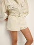 Bej Kuşak Detaylı Denim Şort ile zarif stilinizi keşfedin!