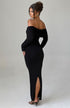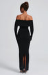Omuz Dekolteli Uzun Triko Elbise – Siyah