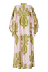 Bu zarif tasarımlı elbise, yüksek yakası, etkileyici arkadan bağlamalı kuşağı ve dökümlü şelale kollarıyla en özel günler için şıklığı temsil ediyor. Saray partileri için mükemmel olan bu parça, hem eklektik hem de cesur stil uzmanları için zahmetsiz bir seçimdir.