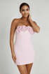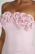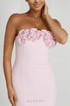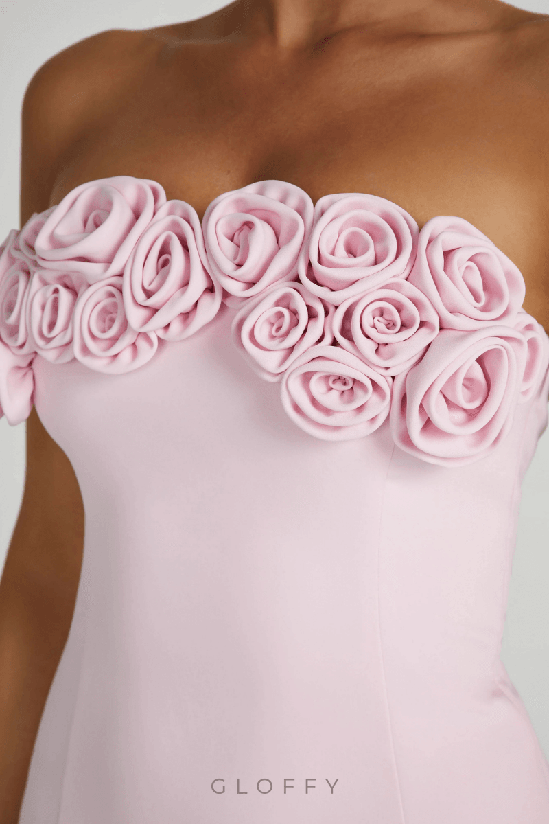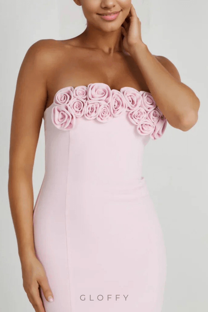 - Tasarım: Çiçek süslemeli, arkadan bağlamalı straplez elbise