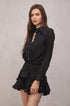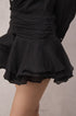 Brinley Pileli Volanlı Mini Elbise ile tanışın. Bu göz alıcı elbise, ruch detayları ve fırfır aksanlarıyla klasik siyah renge feminen bir hava katar. Yüksek kaliteli malzemelerden üretilmiş olan bu elbise, hem rahat hem de şıktır.