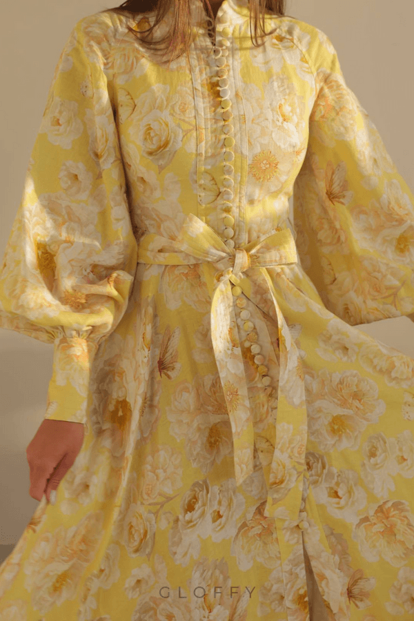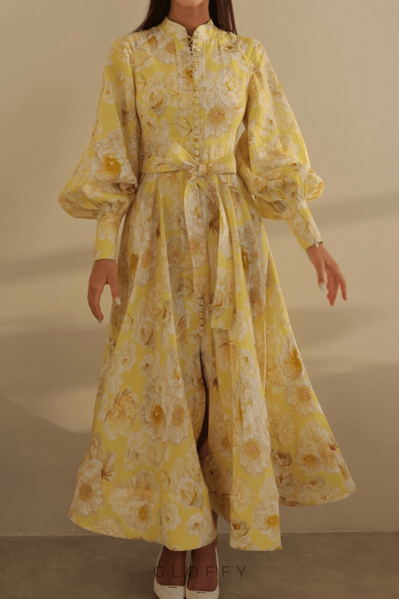 Cécilie Balon Kol Çiçekli Maxi Elbise