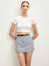 Çizgili Denim Şort ile modern ve zarif bir yaz tarzını keşfedin!