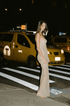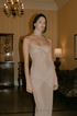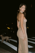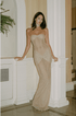 Claudine Straplez Kıvrımlı Uzun Elbise Bej