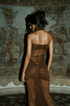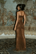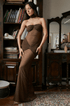Claudine Straplez Kıvrımlı Uzun Elbise Kahverengi