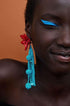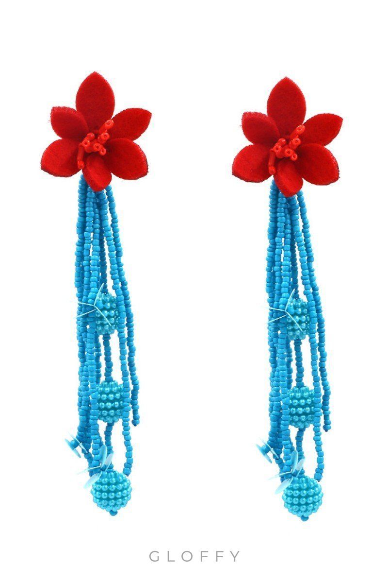 Kontrast Renkli Çiçekli Boncuklu Küpeler