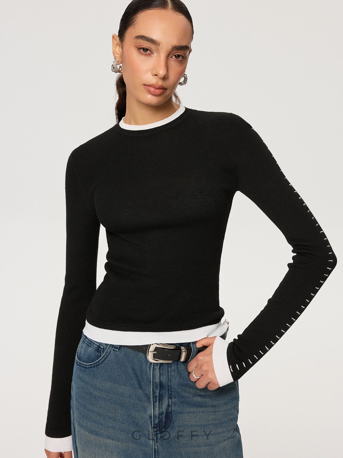 Kontrast Dikiş Yün Karışımlı Penye Üst