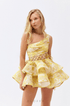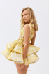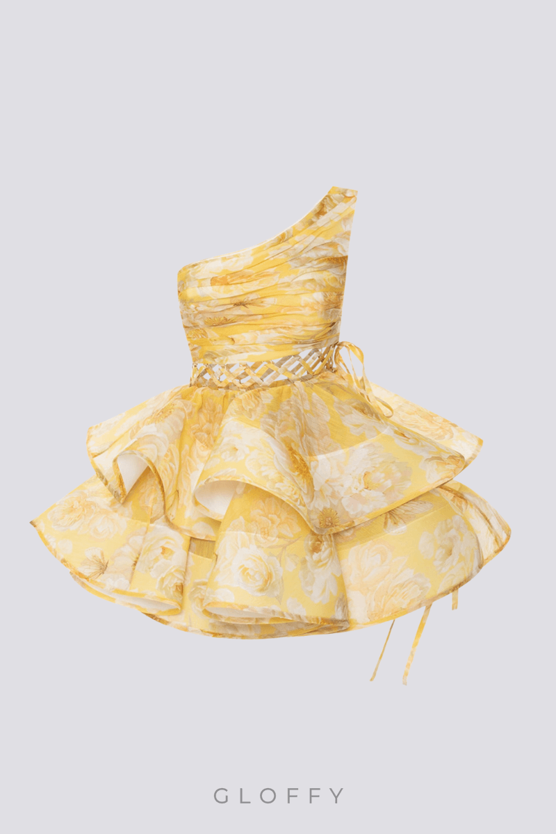 Cora Tek Omuzlu Fırfırlı Kesim Mini Elbise Sarı
