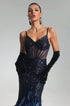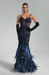 Amelina Korse Detaylı Tüy ve Payetli Zarif Maxi Elbise