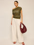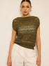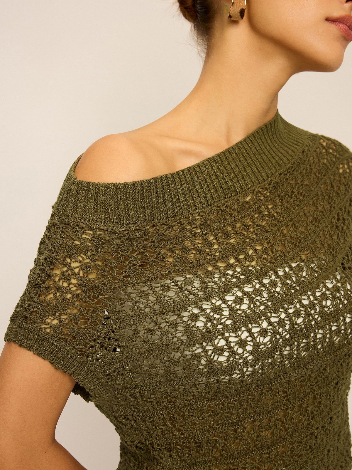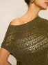 Dantel Örgü Kayık Yaka Triko Bluz – Haki