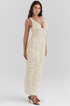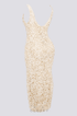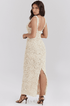 - Tasarım: Yan yırtmaçlı ve ayarlanabilir askılı kolsuz elbise