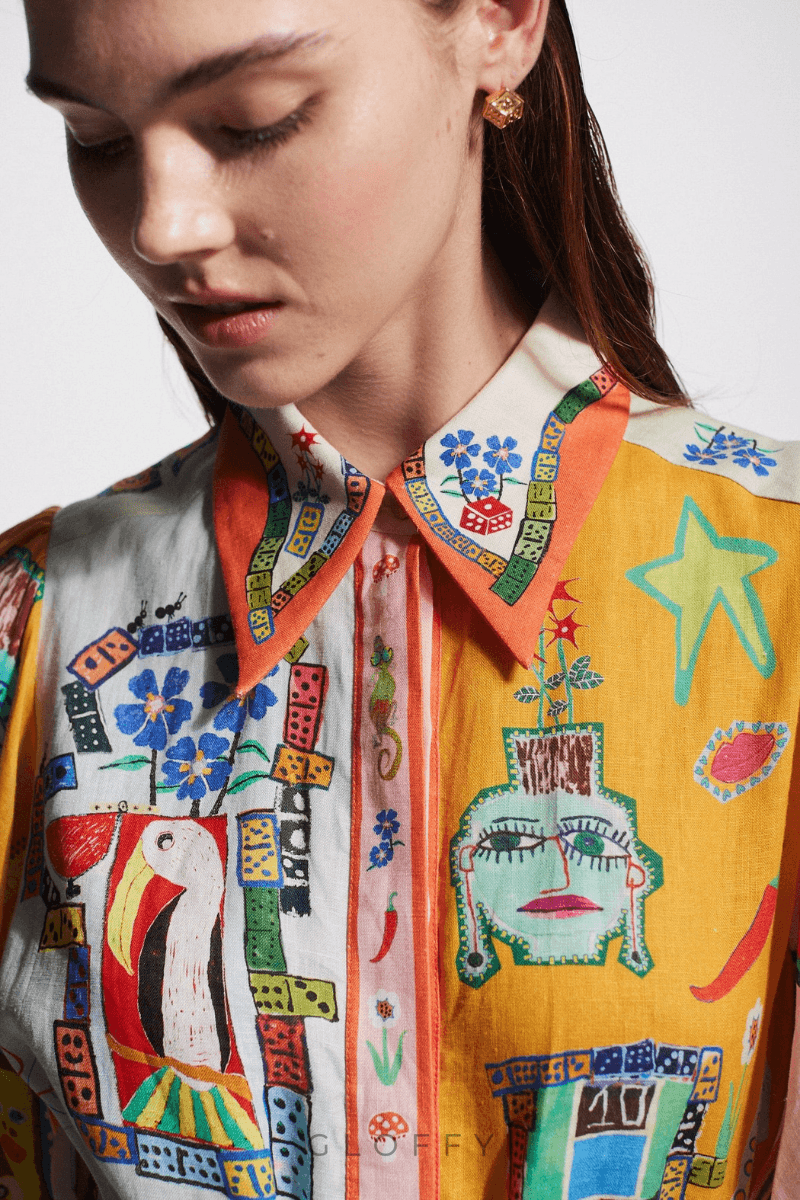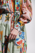 Uzun fener kollu ve eğlenceli bir grafiti baskısına sahip olup, onu her gardırop için dikkat çekici bir parça haline getiriyor. Bağcıklı bel figürünüzü vurgularken, dökümlü A kesim etek zarafet ve hareket katıyor.