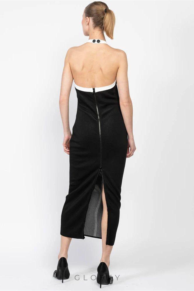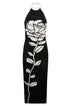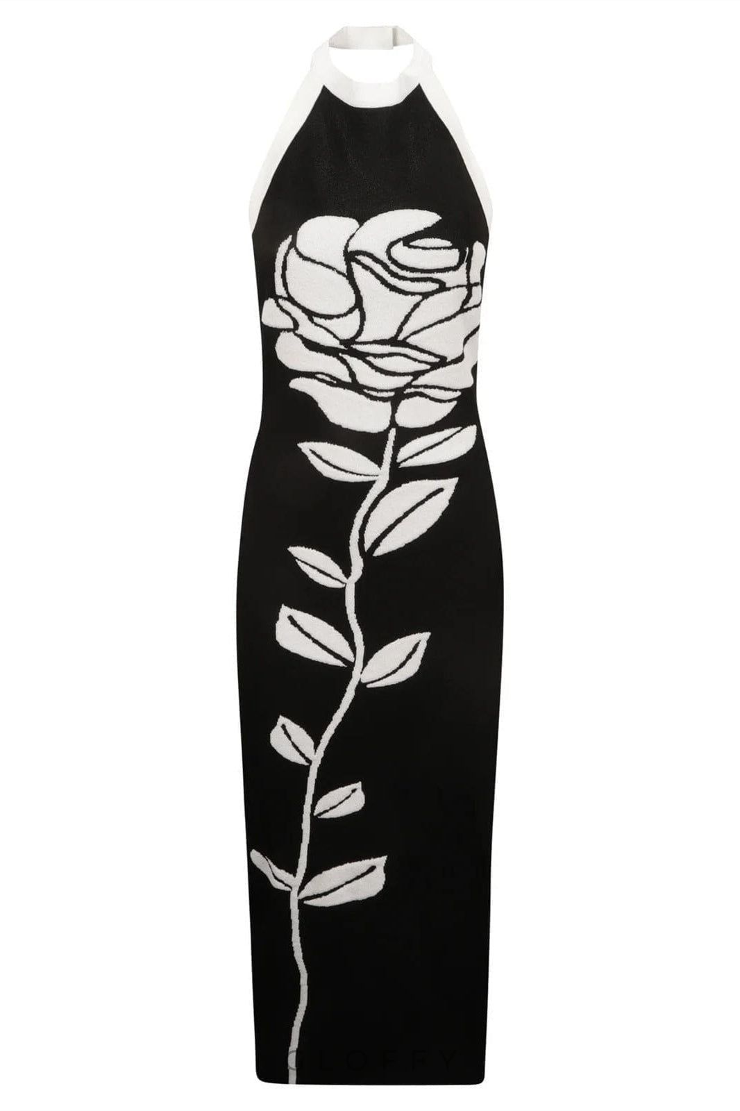 Darlene Halter Çiçekli Açık Sırt Midi Örgü Elbise