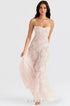 Seren İnce Askılı Dantel Desenli Maxi Elbise