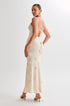 Akşam etkinlikleri veya özel günler için mükemmel olan bu elbise, askılı topuklu ayakkabılar ve zarif mücevherlerle güzel bir şekilde eşleşiyor. Bağcıklı açıklık ayarlanabilir bir uyum sağlar ve elbisenin şık tasarımını geliştirir. Bedeninize sadık kalarak ideal uyum için beden tablomuza bakın ve hem sofistike hem de rahat bir görünümü benimseyin.