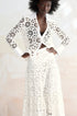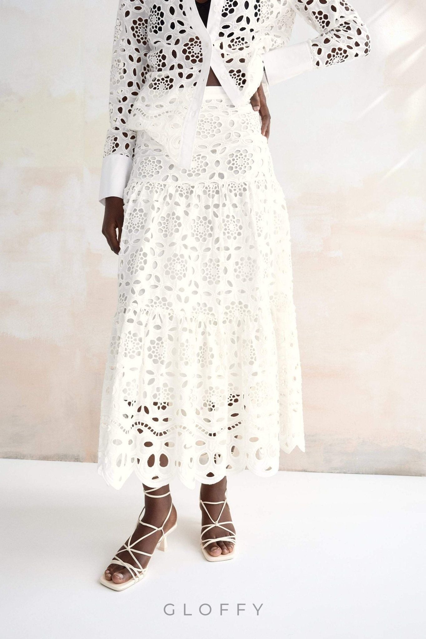 Bu işlemeli dantel set, sofistike kesim tasarımına sahip robalı bluz ve dökümlü A kesim etekten oluşan zarafeti konforla birleştiriyor. Pamuklu kumaş, normal kesim ve orta esneklik sunarak hem gündelik hem de yarı resmi durumlar için mükemmeldir. Arka orta kısımdaki görünmez fermuar kusursuz bir görünüm sağlar. Zarif, Batı esintili bir kıyafet için klasik topuklu ayakkabılar ve sade mücevherlerle eşleştirin.