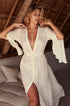 Elvira Düğmeli İpli Maxi Cover-Up ile zahmetsiz şıklığı kucaklayın. Bu çok yönlü parçanın ön kısmı düğmeli ve beli büzmeli olup, plaj kıyafetinize sofistike bir dokunuş katarken uyumu beğeninize göre ayarlamanıza olanak tanır. Akan maksi uzunluk, mayonuzun üzerinde zarif bir örtü sağlar.