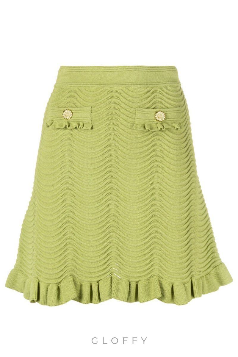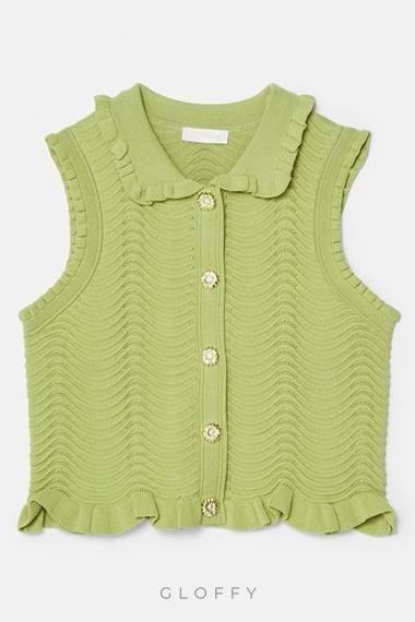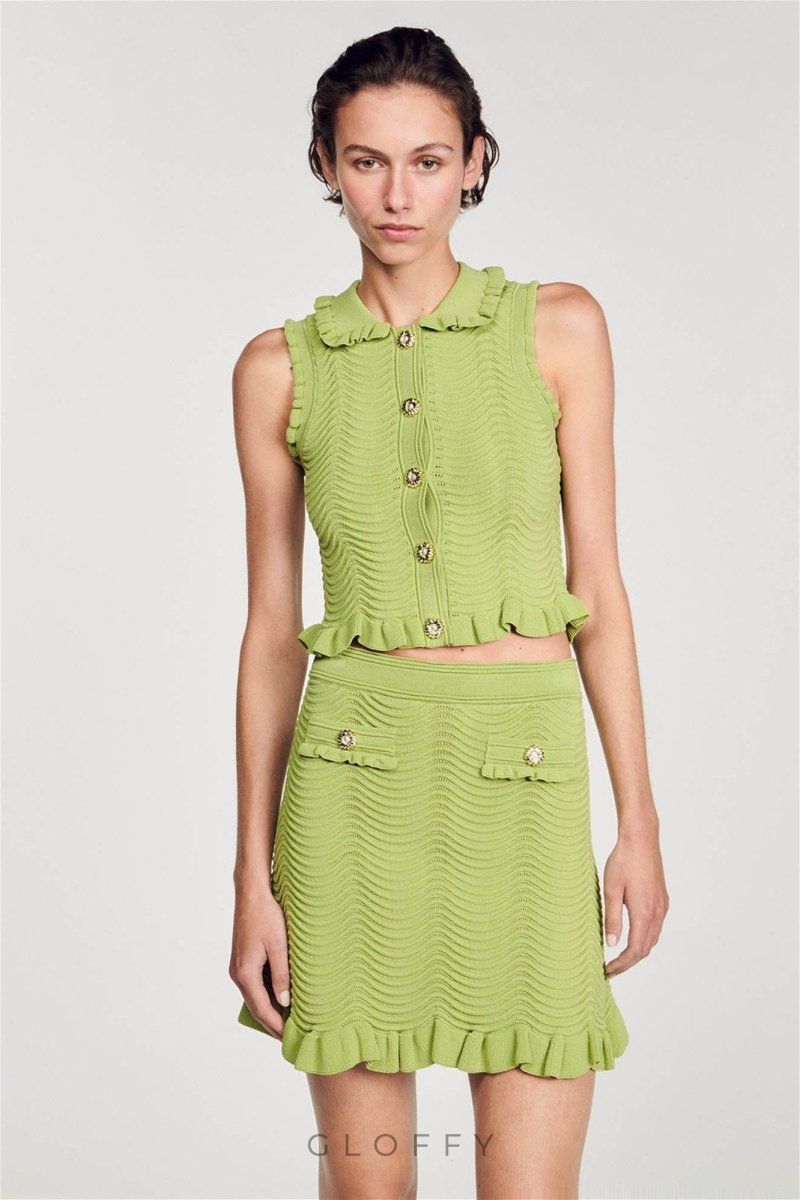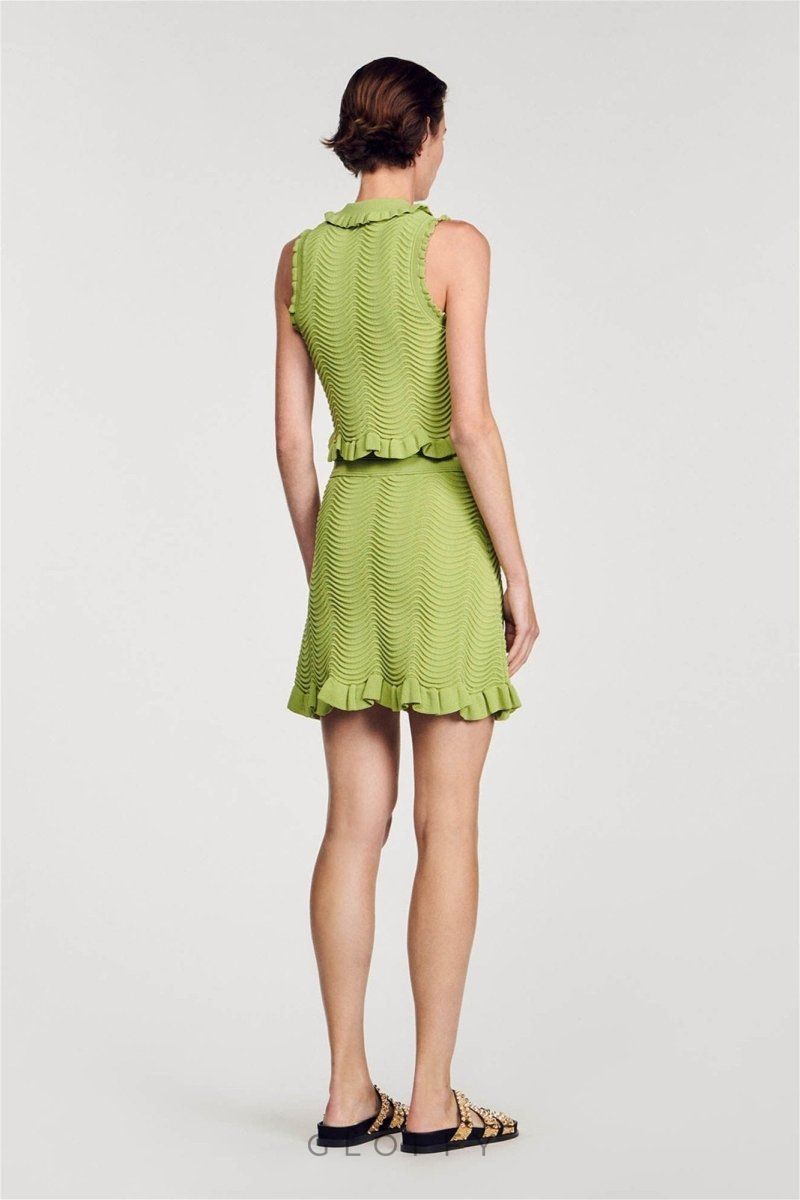 Bu yüksek belli parça, dekoratif düğme detaylı ve daha fazla çekicilik için fırfırlı kenarlı, tığ işi örgü tasarıma sahiptir. Elastik bel bandı, yüksek esnekliğe sahip, hoş ve rahat bir uyum sağlar.