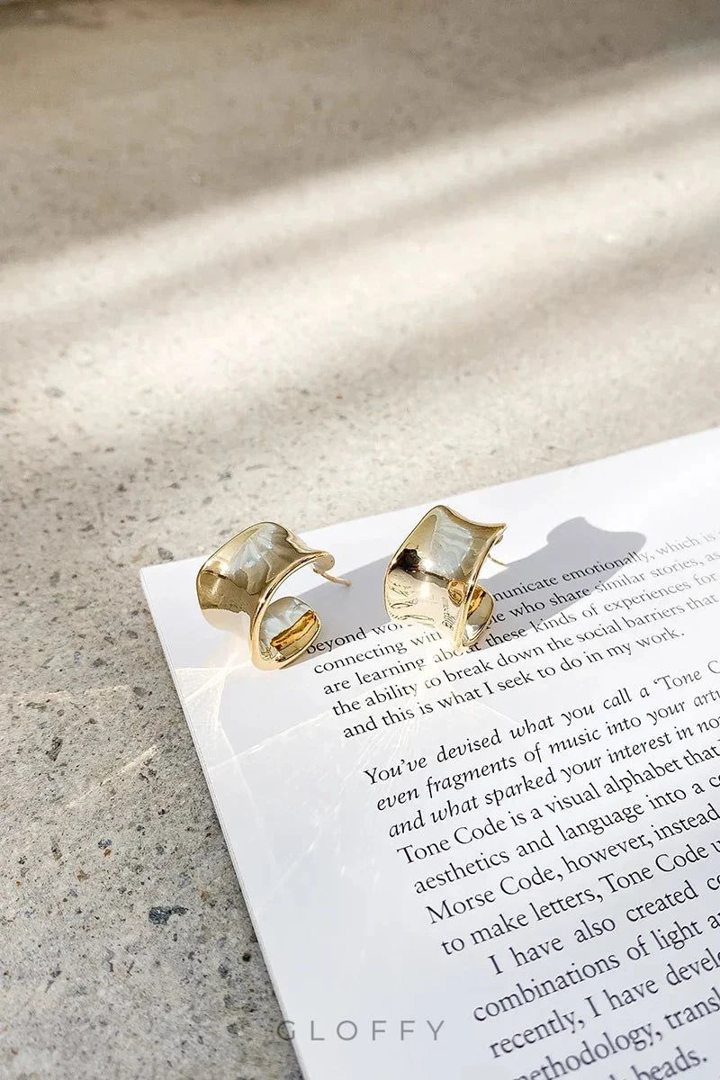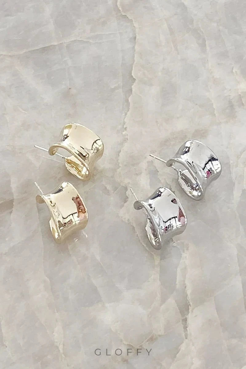 Erin Halka Küpeler ile görünümünüzü yükseltin. Bu cesur ama sade halkalar, çarpıcı altın kaplama kaplamayla işlenmiş, kalın bantlı benzersiz düzensiz bir şekle sahiptir.