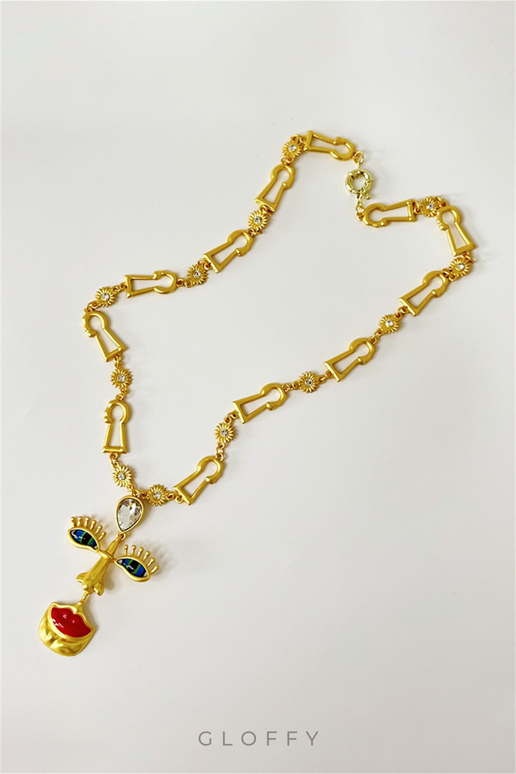 Çarpıcı kırmızı dudak, göz ve burun tasarımına sahip, vintage esintili kolye ve küpe setimizle tarzınızı yükseltin. Bu göz alıcı koleksiyon, retro çekiciliği modern bir dokunuşla birleştirerek onu her türlü kıyafet için mükemmel bir ifade parçası haline getiriyor.