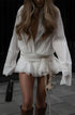 Pileli Fırfırlı Mini Elbise ile gardırobunuzu yükseltin. Derin V yakalı, sivri yakalı ve pilili düşük bel tasarıma sahip bu elbise, sofistike detayları eğlenceli unsurlarla birleştiriyor. Fırfır detayı feminen bir dokunuş katarken, mini boyu şık ve modern bir görünüm sunuyor.