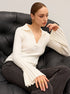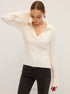 Kruvaze Yaka İspanyol Kol Fitilli Triko Bluz – Ekru
