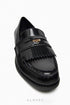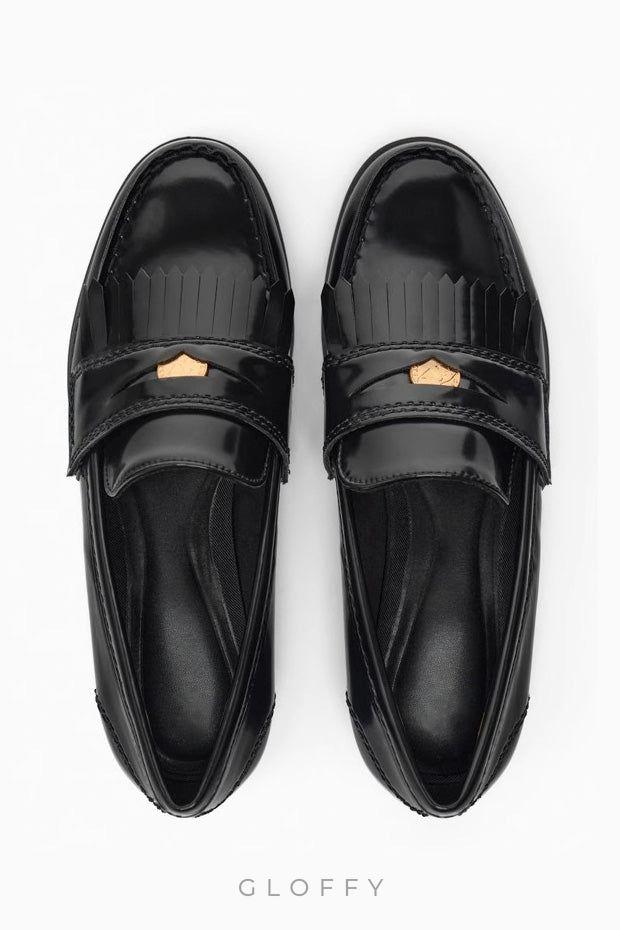 - Tasarım: Dekoratif detaylı, düz kayık ayakkabı stilinde sevimli siyah mokasen
