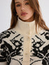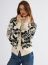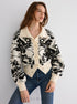 Véllora Çiçek Dokulu Düğmeli Triko Hırka