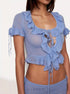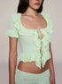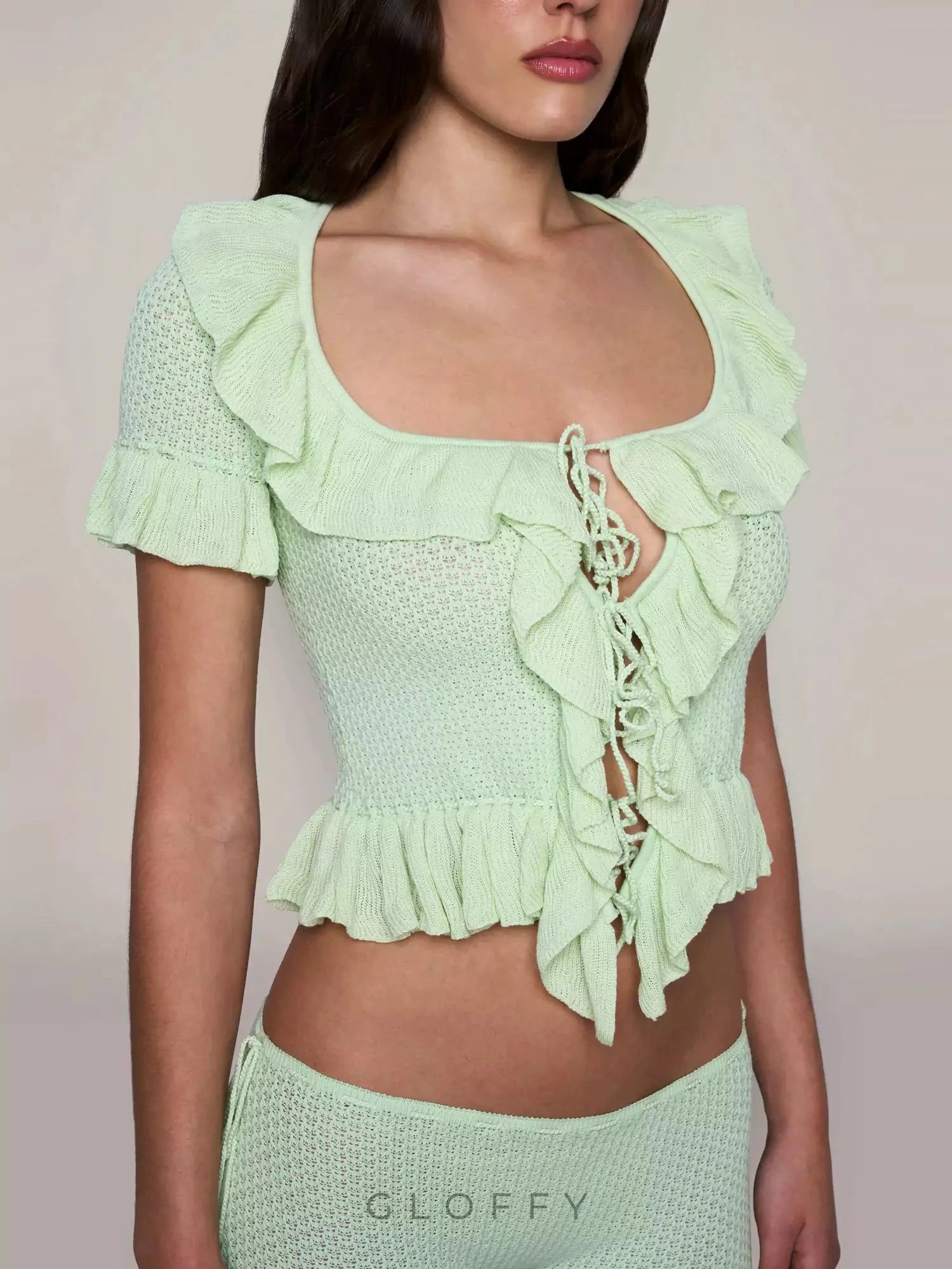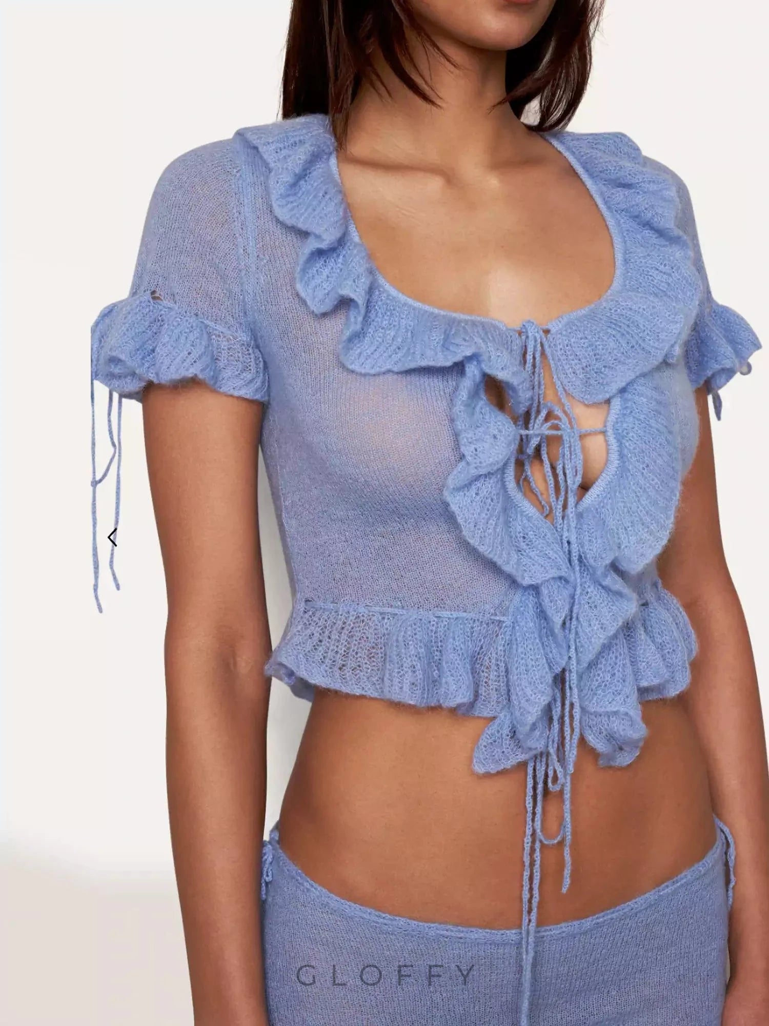 - Özellikler: Dantel detaylı ve bağlama vurgulu kısa üst