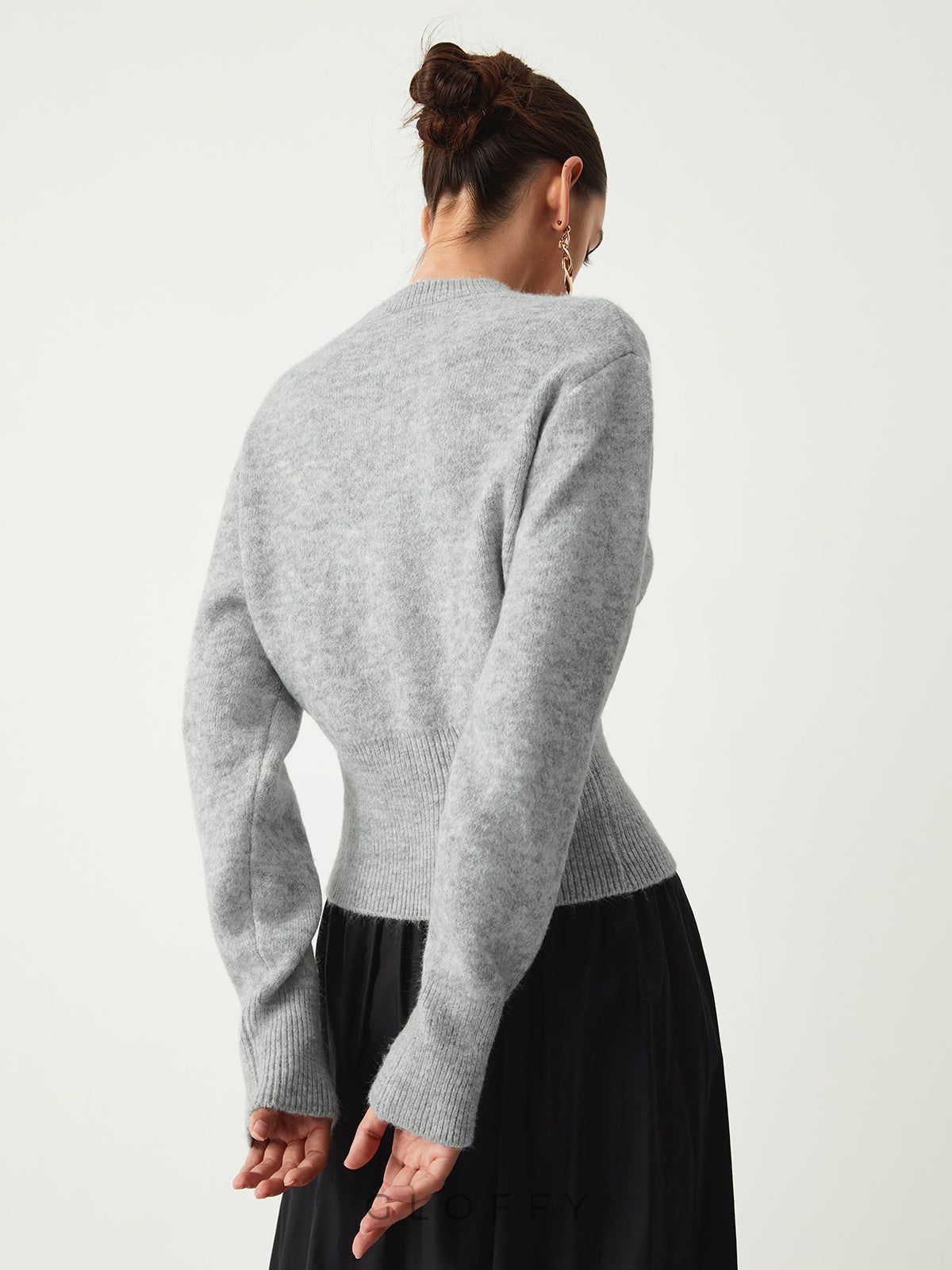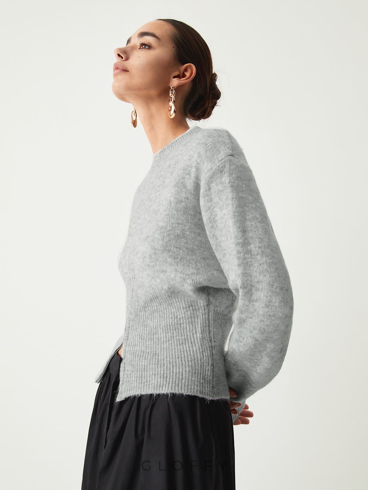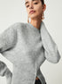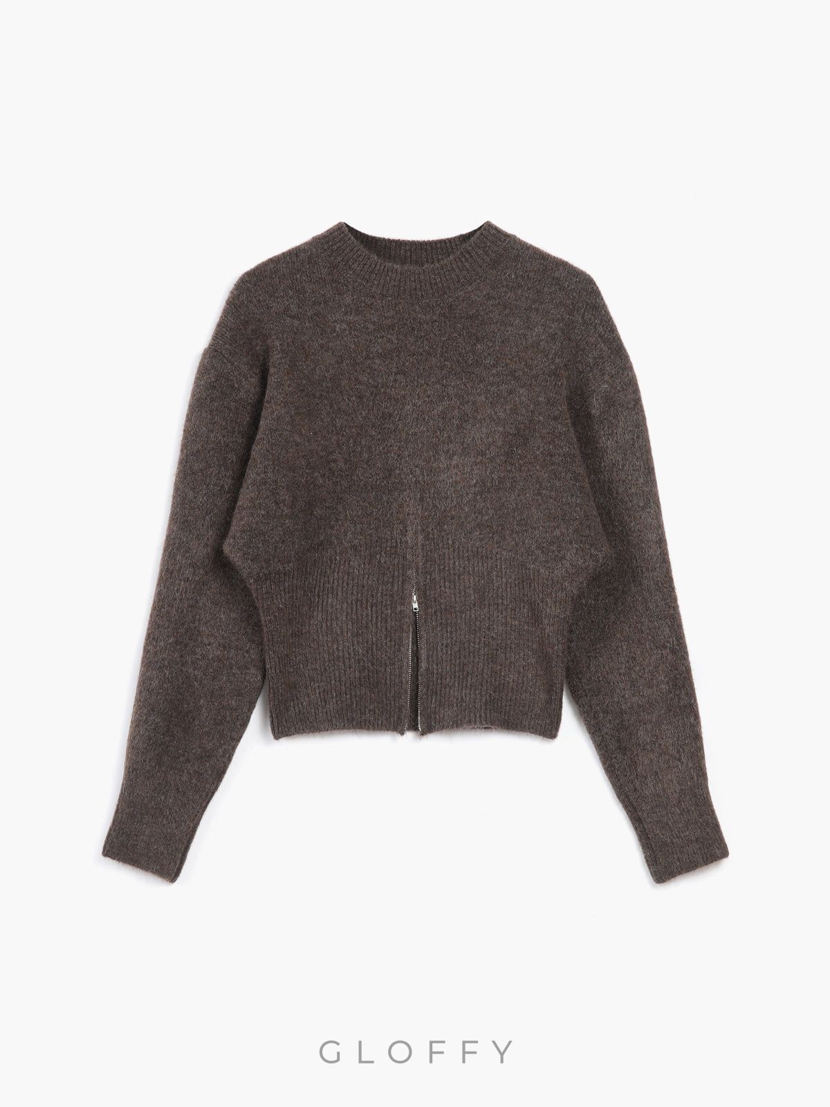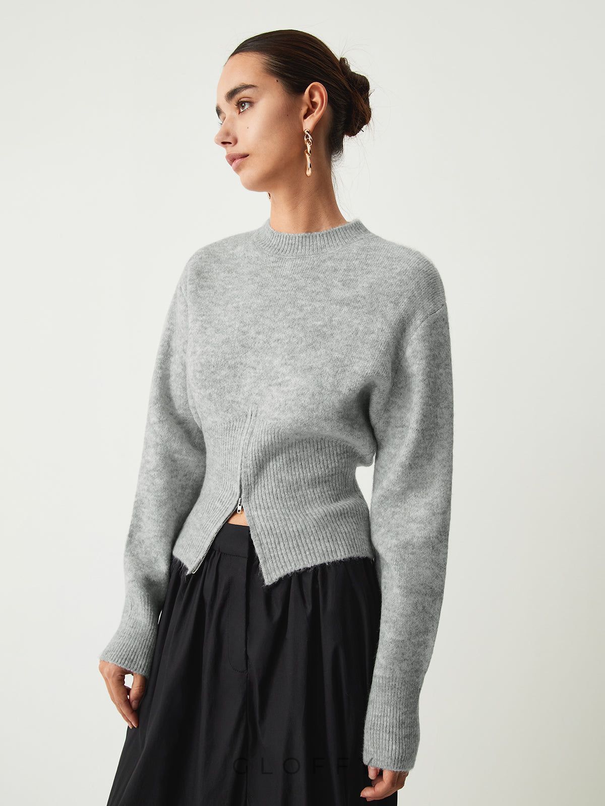 Fermuar Detaylı İnce Fitilli Triko Kazak – Gri