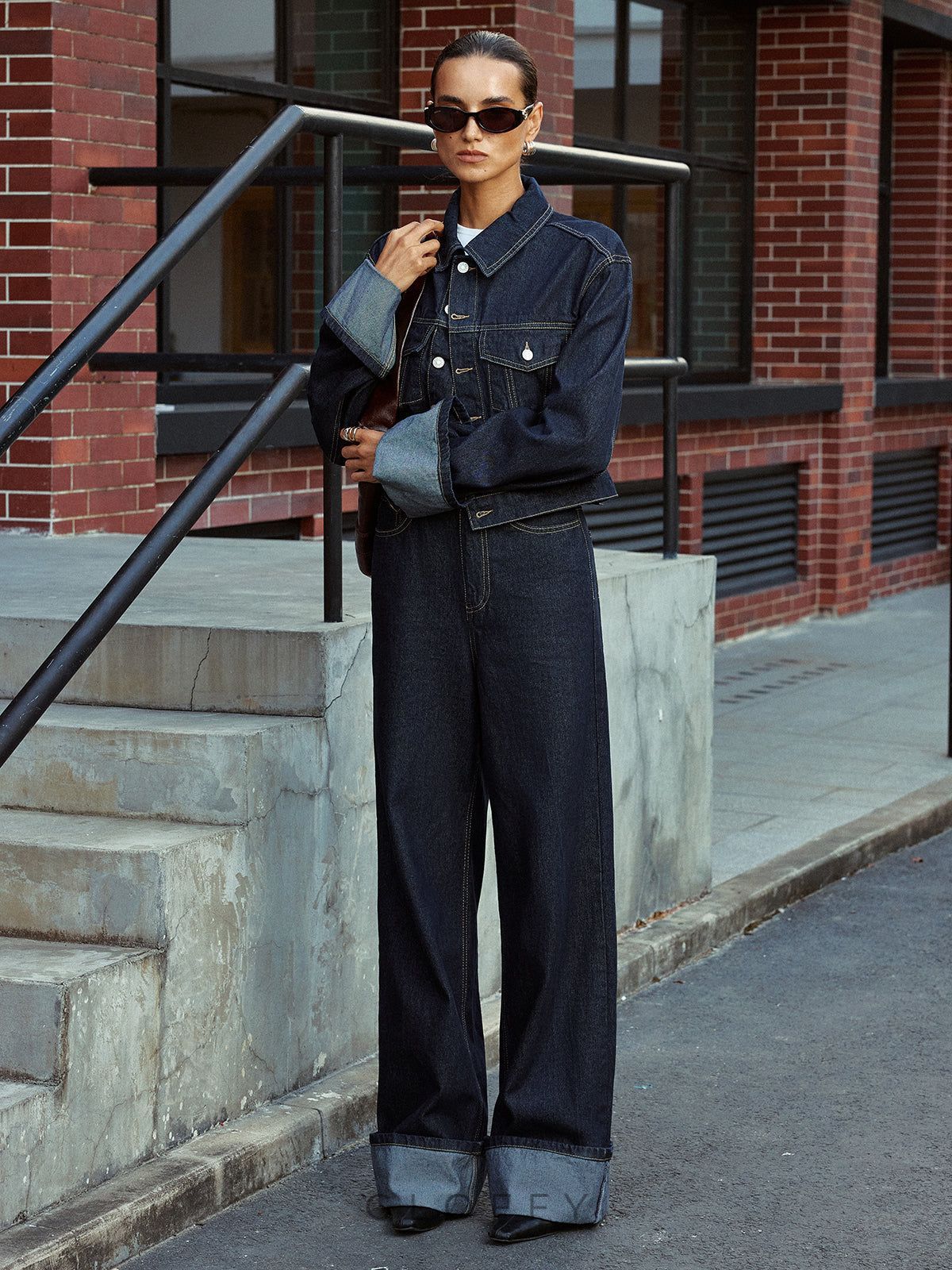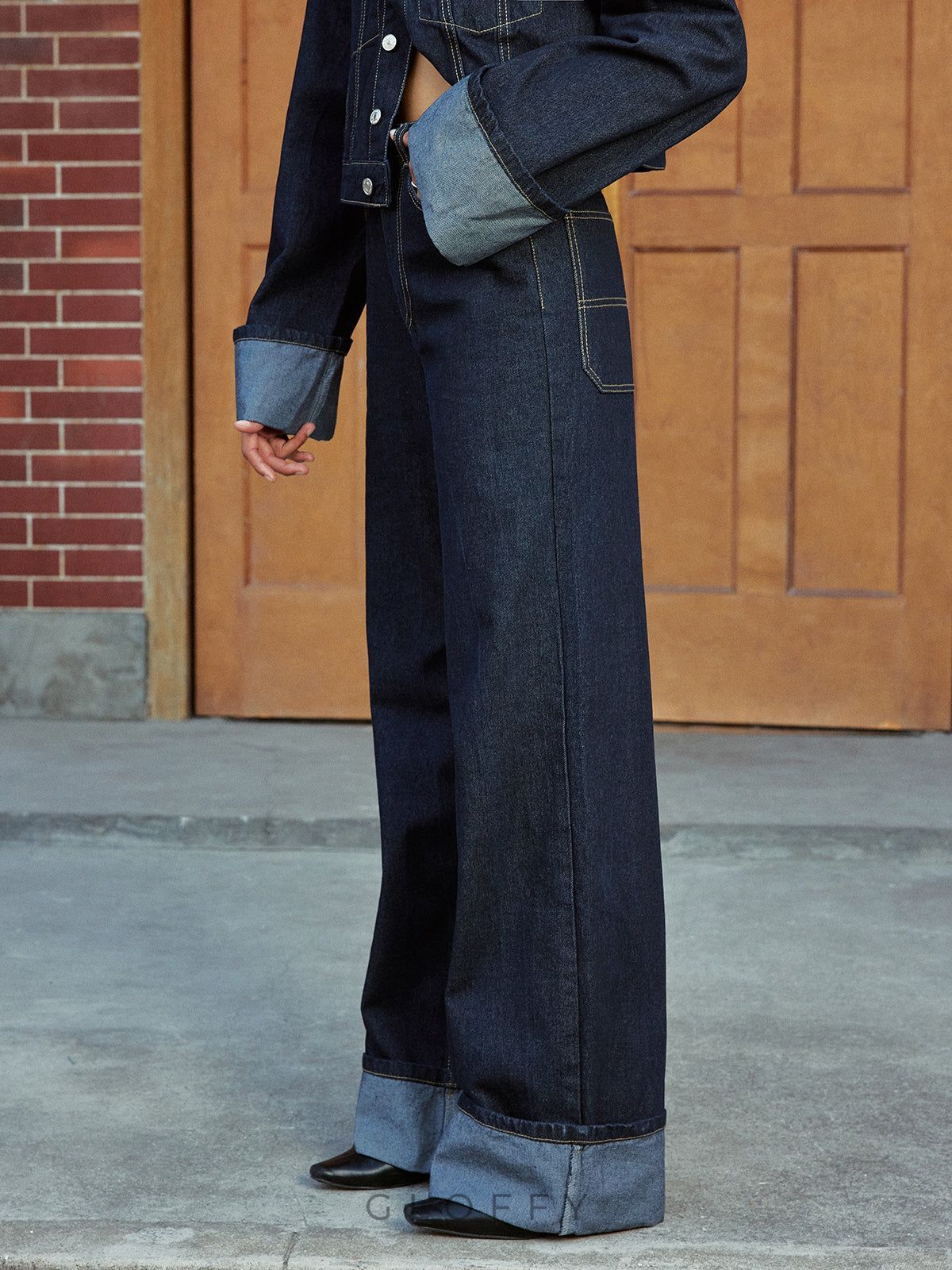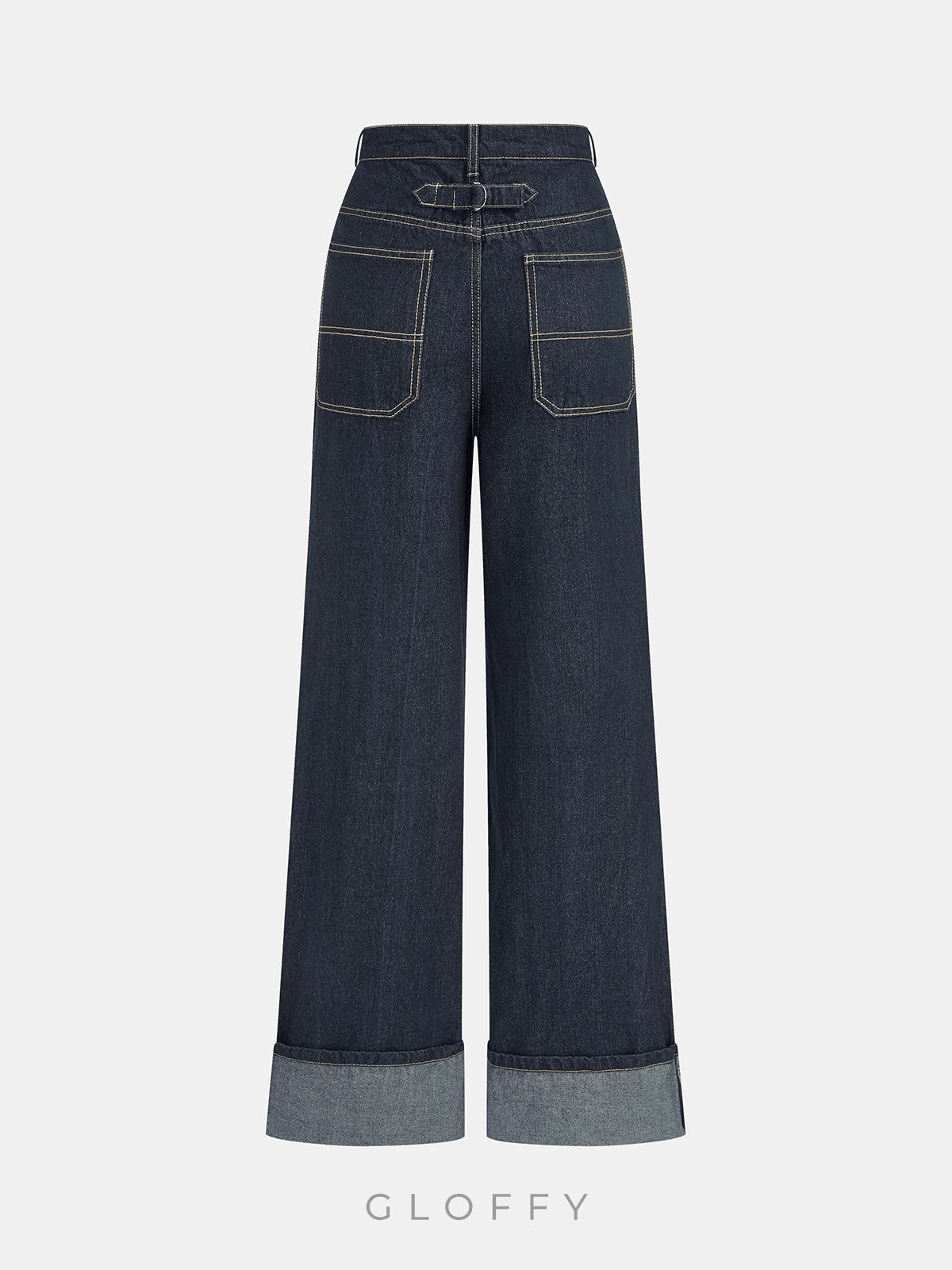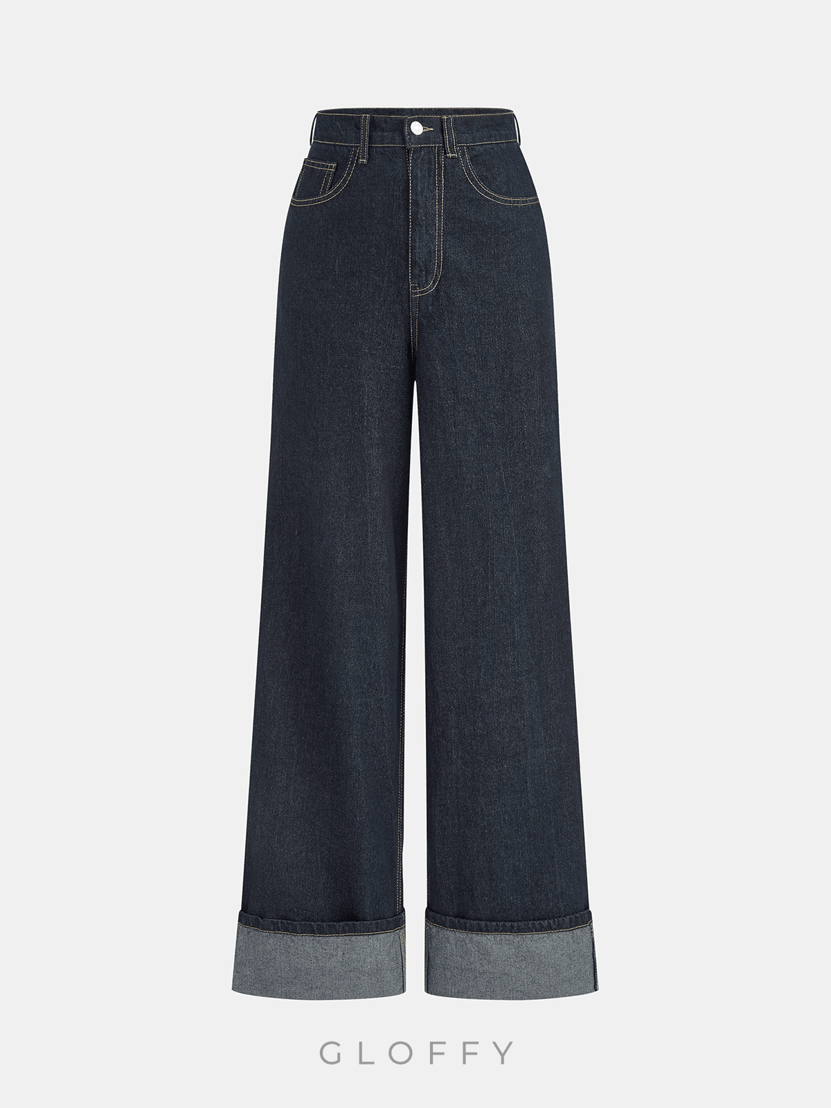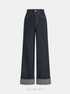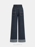 Yüksek Bel Paça Katlamalı Bol Paça Kot Pantolon
