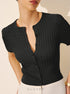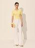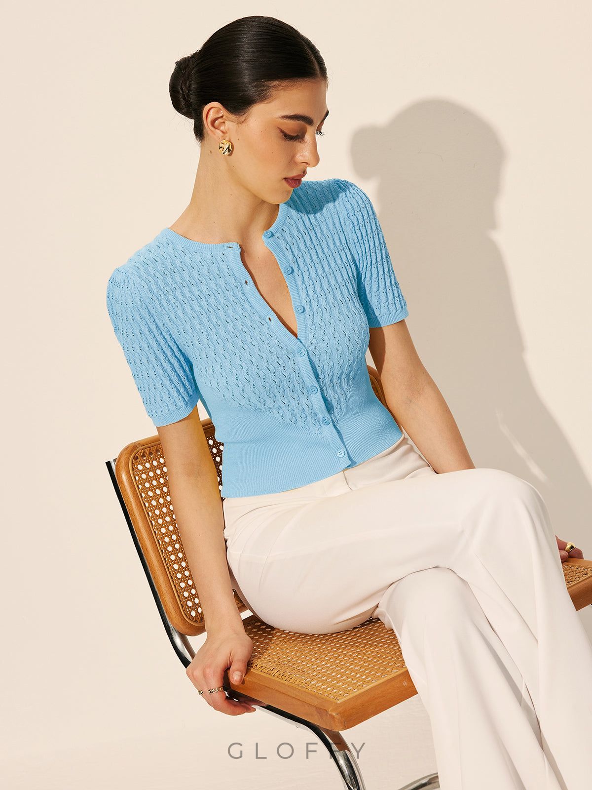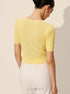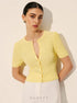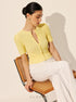 Düğmeli Ajurlu Kısa Kollu Triko Bluz – Sarı