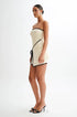 Çarpıcı asimetrik tasarıma ve kontrast astarlı kenarlara sahip bu askısız mini elbiseyle bakışları üzerinize çevirin. Yüksek esnekliğe sahip trikodan üretilen bu ürün, hoş bir uyum ve rahat bir kullanım sunar.