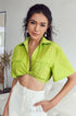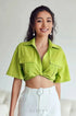 Kay Twisted Crop Keten Bluz, şık bir burgulu ön tasarıma ve rahat ve havadar bir his için nefes alabilen ketenden hazırlanmış kısa kesime sahiptir. Hafif esnek kumaş rahat bir uyum sağlarken, kazak tarzı giyimi kolaylaştırır. Sıcak havalar için mükemmel olan bu bluz, şık ve rahat bir görünüm için yüksek belli etek veya pantolonlarla zahmetsizce eşleşir.