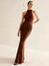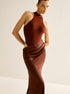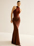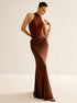 Solène Asimetrik Drapeli Saten Maxi Elbise