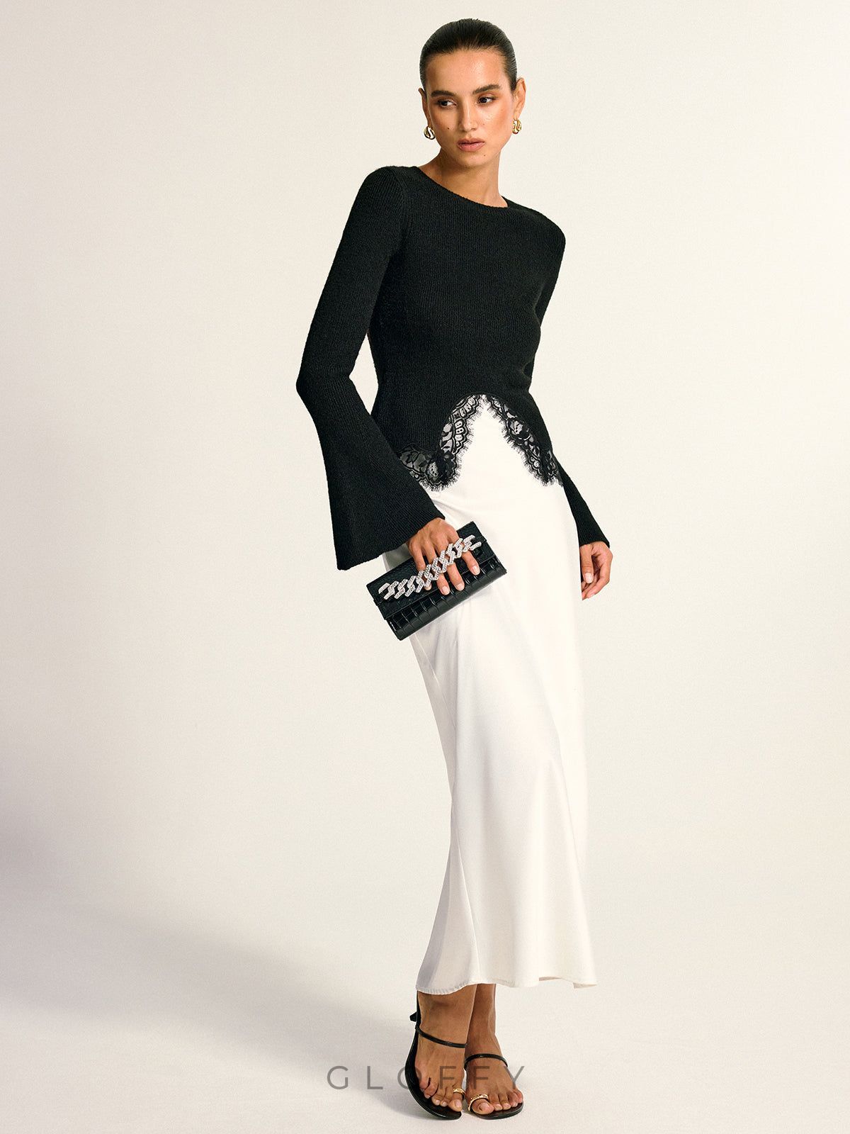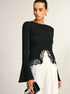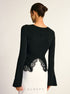 Klasik Fitilli Dantel Detaylı Uzun Kollu Siyah Triko Bluz
