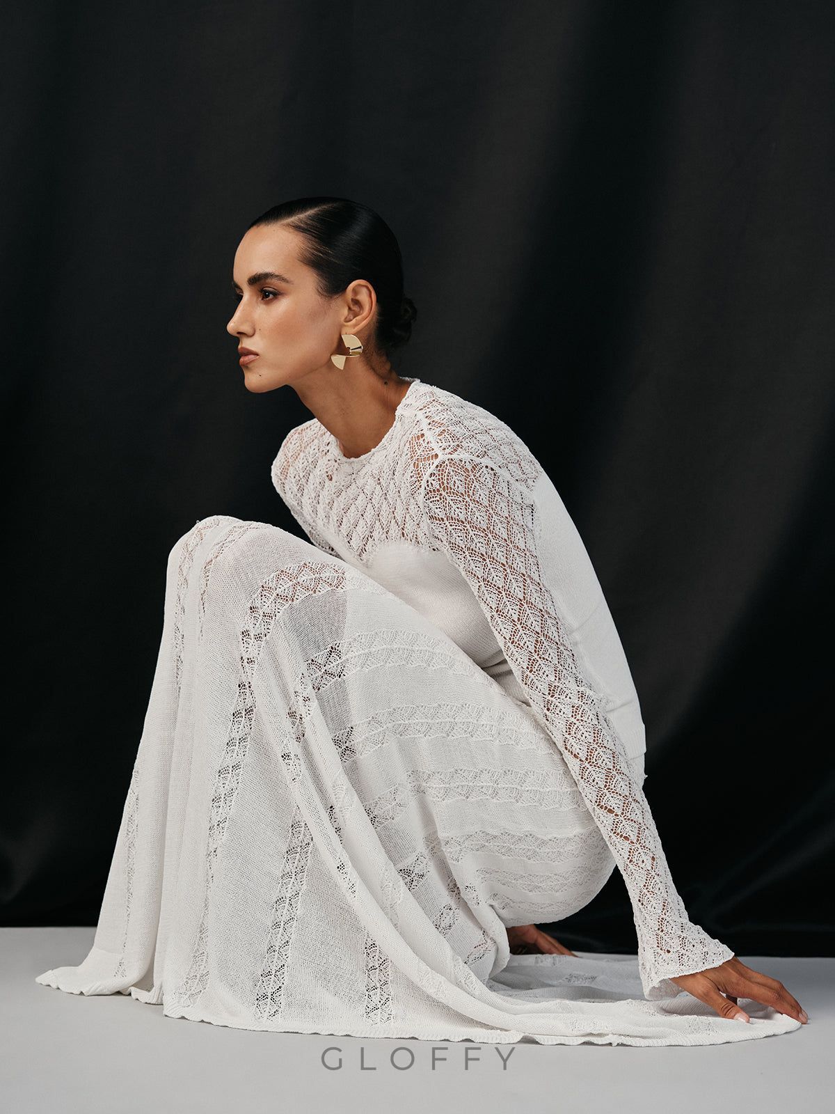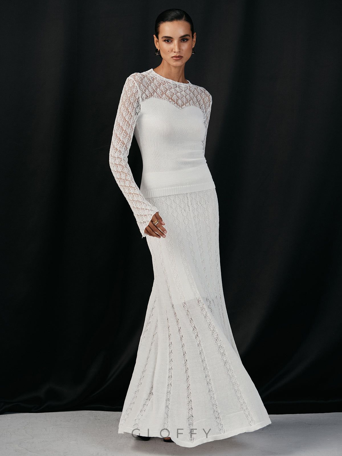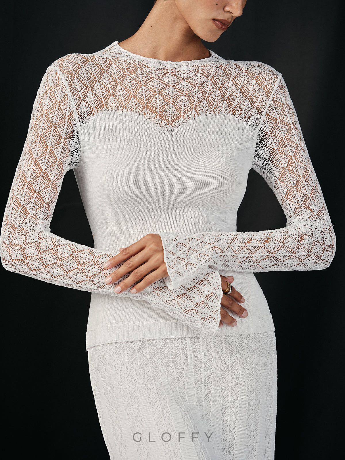 Şeffaf Dantel Detaylı İnce Triko Bluz – Beyaz