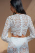 Şık, kesik çiçek desenli bu yarı transparan triko parçasıyla kendinizi gösterin. Hafifçe esnek kumaşı, zarif bir dokunuşla şeklinizi vurgulayan güzel bir uyum sağlar.