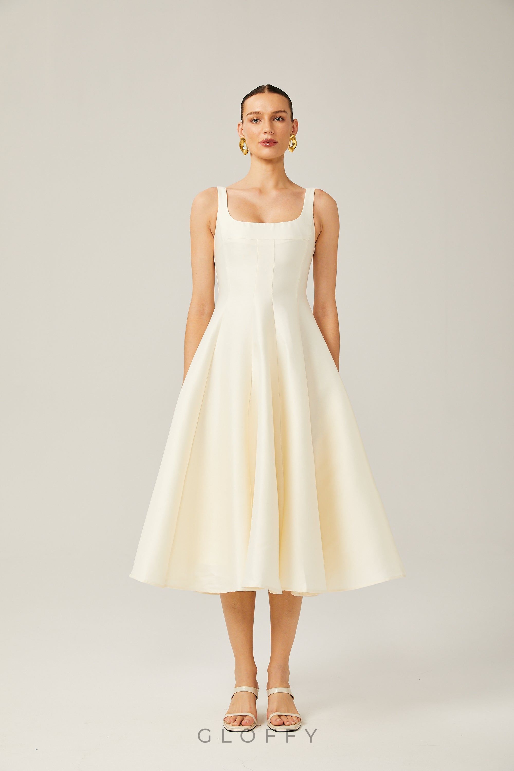 Leonor Saten Bedene Oturan Kloş Midi Elbise