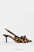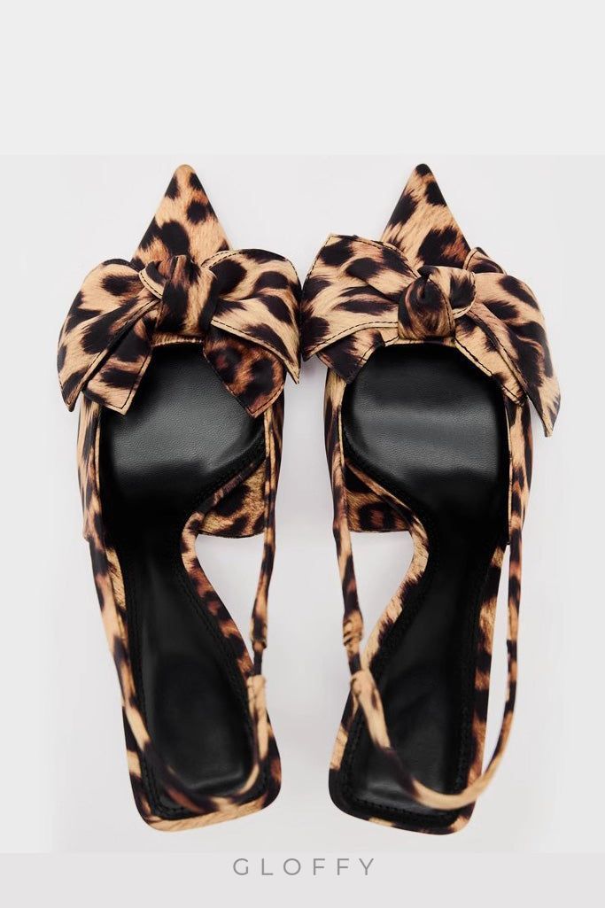 - Tasarım: Leopar desenli, kelebek fiyonk detaylı ve yan kesimli sivri burunlu ayakkabı